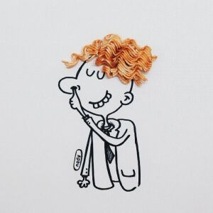 Dans les dessins de l’artiste, on retrouve, par exemple, le Nachos qui forme la voile d’un bateau, un M&M’s qui se retrouve comme nez rouge d’un clown ou encore les madeleines qui deviennent des carapaces de tortues.